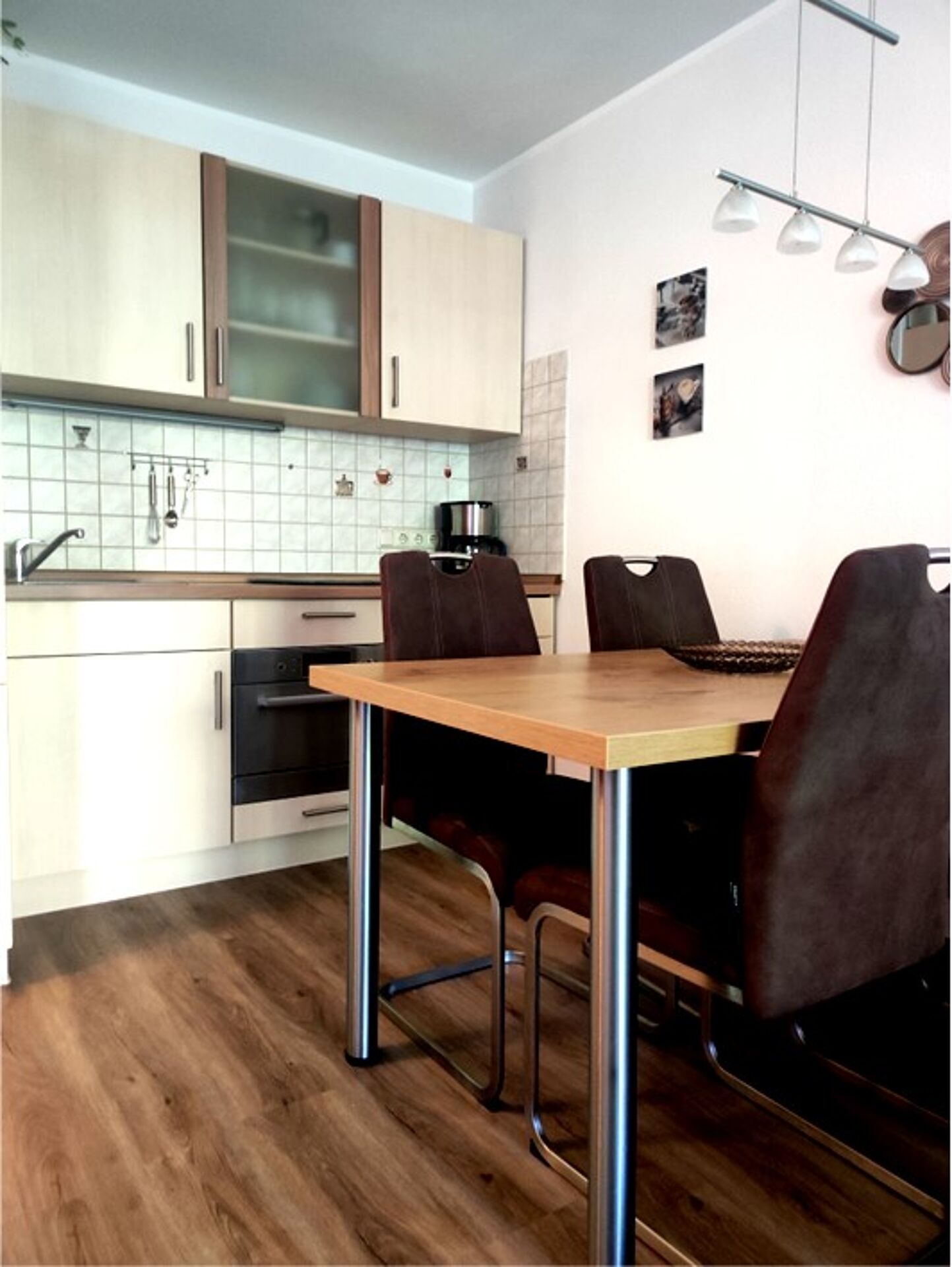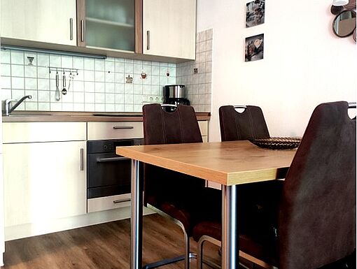 voll ausgestattete Küchenzeile mit Essecke
