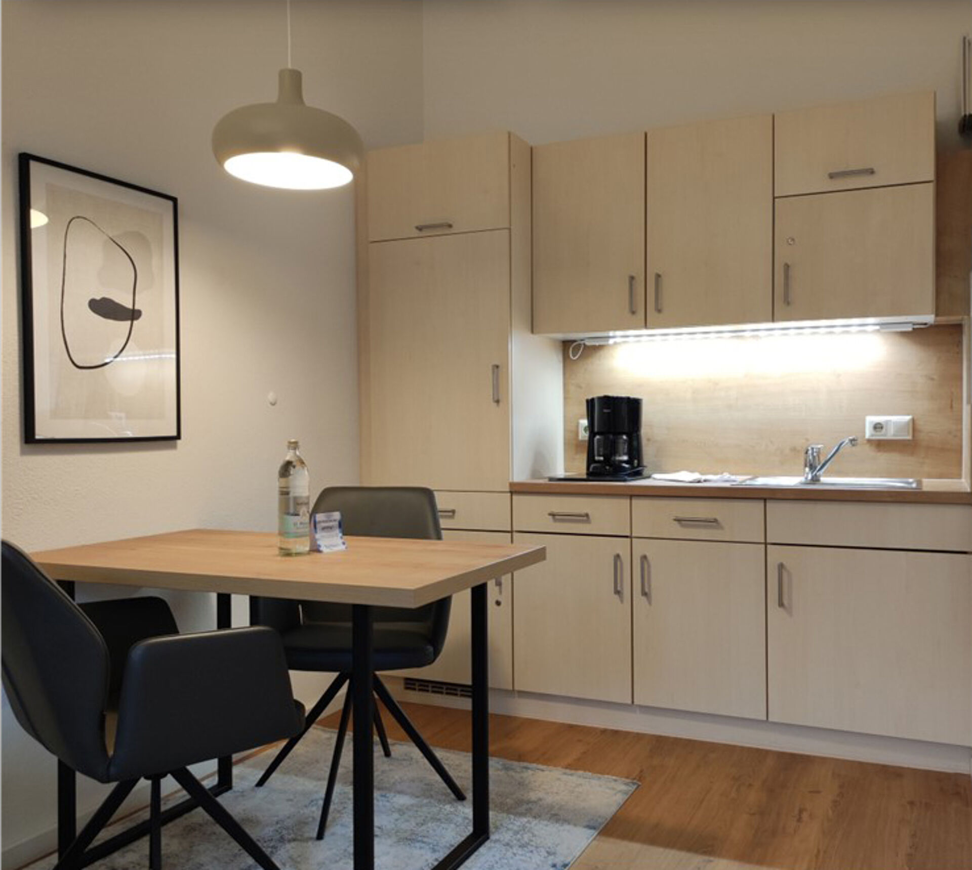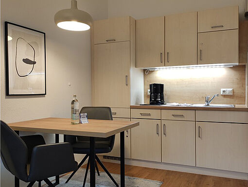 Küche im Wohnraum mit Cerankochfeld & Mikrowelle